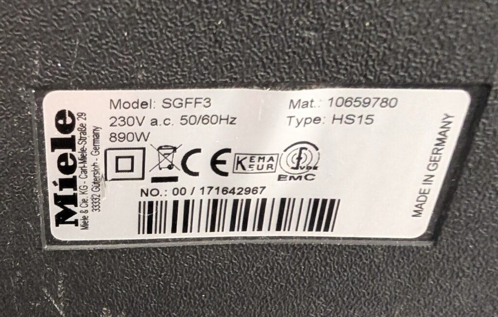 Mikrojen tyyppikilven löydät kun aukaiset laitteen luukun ja kilpi löytyy rungosta luukun alta joko poikittain tai se on pystyssä käyttöpaneelin sivustassa: